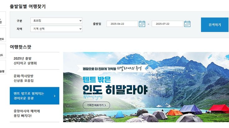 실크로드 탐방부터 히말라야 안나푸르나 베이스캠프까지 광범위한 선택지를 직관적으로 비교할 수 있으며, 각 상품 페이지에 포함된 고도표와 일자별 이동 거리를 통해 본인의 체력에 적합한지를 판단하는 유연한 정보 환경을 제공합니다.