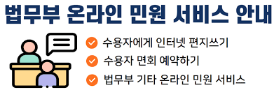 교도소 접견 예약, 출입국 증명서 발급, 변호사 시험 성적 조회 등 법무 행정 전반을 비대면으로 처리하는 법무부 온라인민원서비스는 국민의 시간과 비용을 절약해 주는 가장 명확한 디지털 공공 행정 통로입니다.
