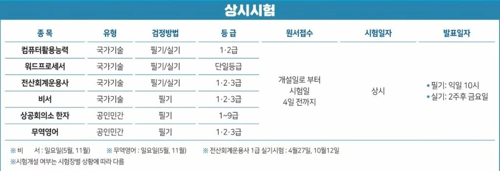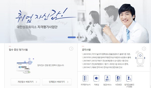 가장 먼저 시험 일정과 접수 현황을 파악하기 위해 대한상공회의소 자격평가사업단 공식 홈페이지(license.korcham.net)에 접속하시기 바랍니다.