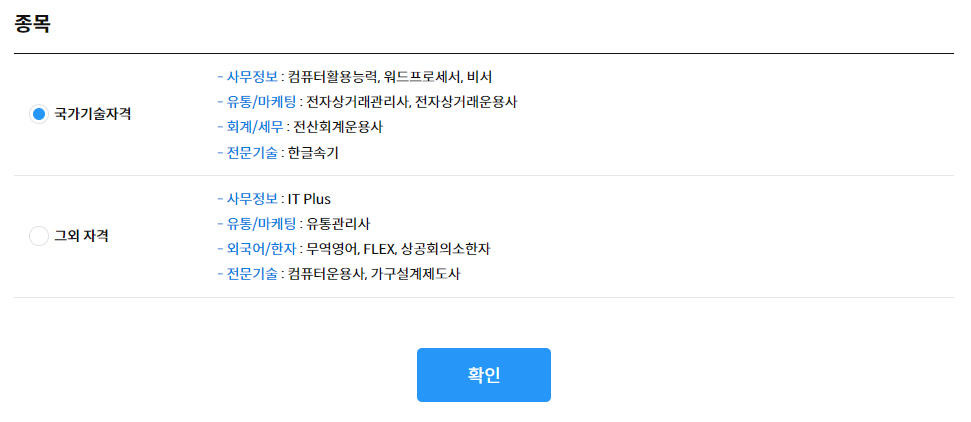 - 종목별 상세 정보 확인: 컴퓨터활용능력, 워드프로세서, 전산회계운용사 등 각 종목의 출제 기준을 조력자 역할을 수행하며 지능적으로 나열 가이드하며 명확한 수험 방향 확인을 지원합니다.