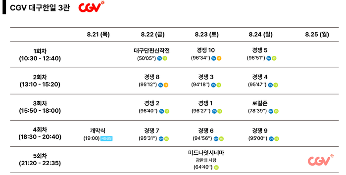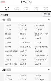 - 구로 지점 선택 메뉴 활용: 서울 지역에서 CGV 구로를 선택하면 조력자 역할을 수행하며 오늘부터 일주일간의 시간표를 지능적으로 나열 가이드하며 명확한 시간 확인을 지원합니다.