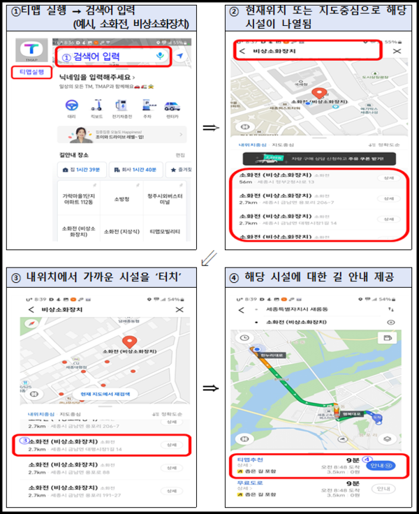 안드로이드는 구글 플레이스토어, 아이폰은 앱스토어에서 'T map'을 입력한 뒤 정식 버전을 선택하여 내려받으세요.