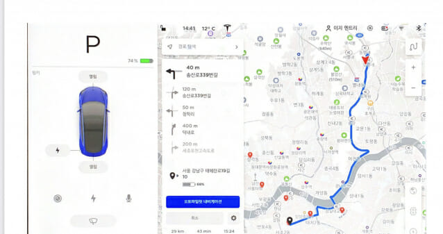 차량의 큰 화면으로 지도를 보고 싶다면 스마트폰과 차량 인포테인먼트 시스템을 연동하여 사용하는 것을 추천합니다.