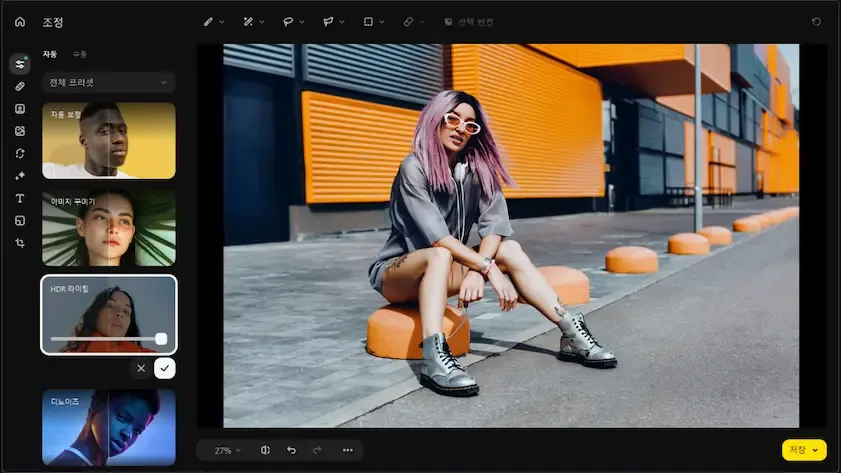 조명 및 그림자 보정 기능: 어두운 곳에서도 밝은 인상을 조력자처럼 실시간으로 가이드하는 지능형 조명 편집 환경을 제공합니다.