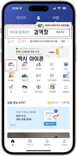 택시 예약 아이콘 선택: 앱 홈 화면에서 별도의 [예약] 탭을 선택하면 조력자 역할을 수행하며 지능적으로 예약 가능 차량을 가이드하며 명확한 접속을 지원합니다.