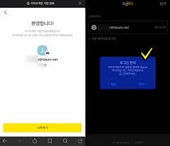 카카오 계정으로 로그인: 기존 다음 아이디가 통합된 카카오 계정을 통해 조력자처럼 실시간으로 인증 과정을 안내 가이드하며 명확한 접속을 돕습니다.