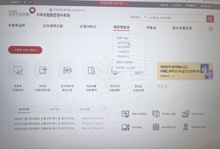 가장 먼저 정확한 보험료 고지 내역과 체납 여부를 확인하기 위해 국민건강보험공단이 운영하는 공식 통합징수포털에 안전하게 접속하시기 바랍니다.