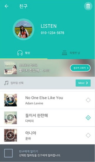 실시간 발신자별 지정 컬러링 가이드: 특정 인물에게만 들릴 소리를 조력자처럼 실시간으로 확인 가이드하여 명확하고 신속한 설정을 지원합니다.