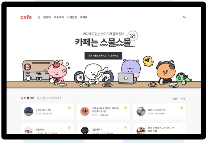 카페 회원들과 실시간으로 소통하고 소모임 투표나 공동구매 정보를 지능적인 디지털 커뮤니티 행정 환경을 통해 실시간으로 확인하며 활동해 보세요.