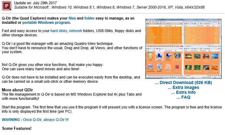 가장 먼저 바이러스 없는 안전한 실행 파일과 최신 기능을 확보하기 위해 제작사에서 운영하는 공식 Q-Dir 온라인 플랫폼에 안전하게 접속하시기 바랍니다.