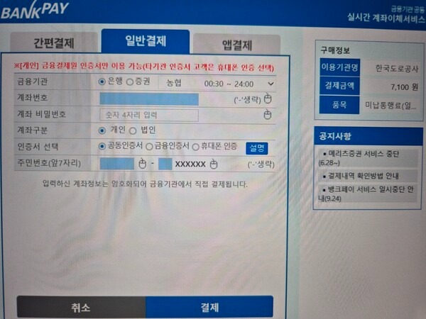 미납 통행료 실시간 결제 및 가상계좌 가이드: 신속한 납부를 위해 조력자처럼 실시간으로 온라인 가이드하며 명확한 처리를 지원합니다.