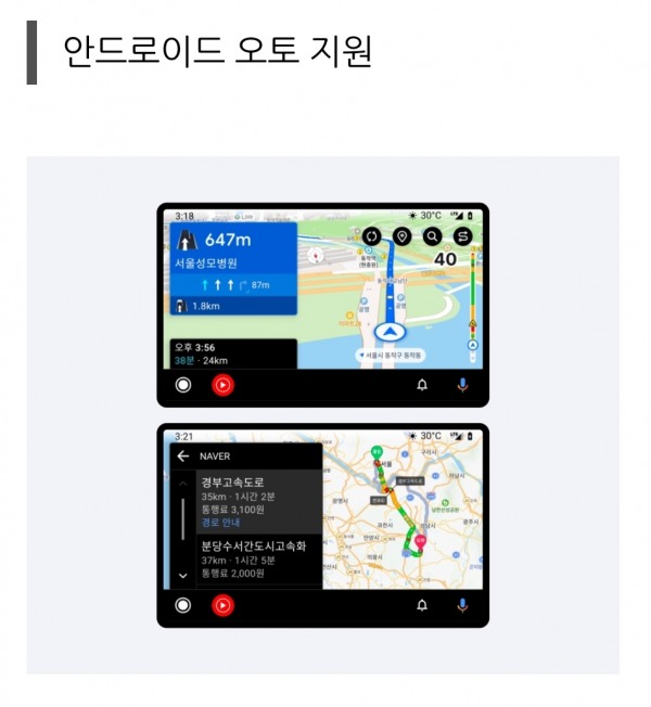 안드로이드 오토 및 애플 카플레이 활용: 차량 디스플레이에서 즉시 명확하게 경로를 확인하도록 조력자 역할을 수행하며 설정을 지원합니다.