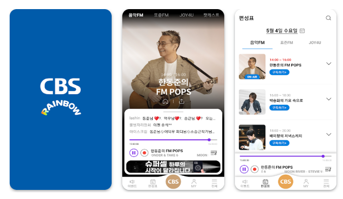 여러분이 듣는 모든 노래가 행복한 하루의 밑거름이 되고 CBS 레인보우와 함께하는 시간이 여러분의 삶을 더 안정적이고 풍요롭게 만드는 행복한 시작이 되길 응원합니다.