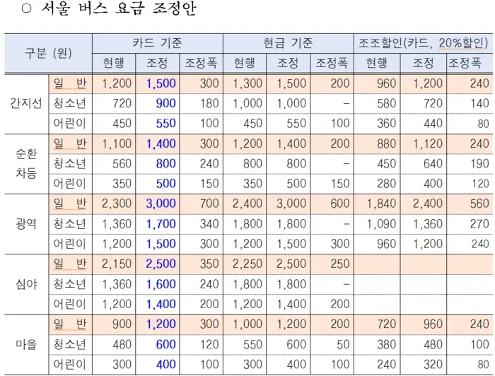1. 서울 시내버스 기본 요금 및 유형별 접속 가이드