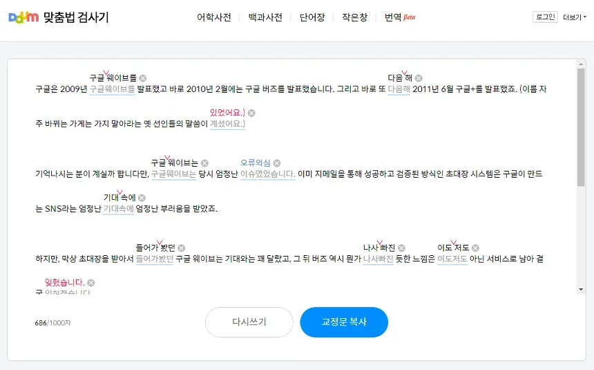 모바일 '다음(Daum) 맞춤법 검사기' 활용: 스마트폰에서도 즉시 명확하게 띄어쓰기 오류를 색상별로 구분하여 확인하도록 조력자 역할을 수행하며 설정을 지원합니다.