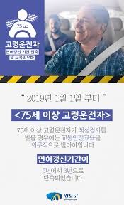 75세 이상 어르신은 면허 갱신 전 반드시 교통안전교육(약 2시간)을 이수해야 하며, 이 교육에는 인지능력 자가진단 과정이 포함되어 있습니다.