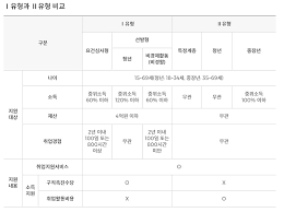 소득 하위 60% 이하를 대상으로 하는 1유형을 선택하면 경제적 부담을 덜어주는 수당 중심의 지원을, 역량 강화가 필요한 분들은 2유형을 통해 맞춤형 서비스를 직관적으로 선택할 수 있습니다.